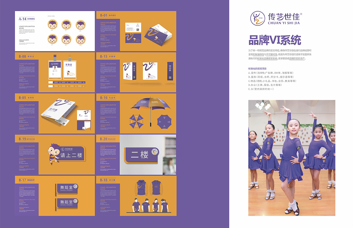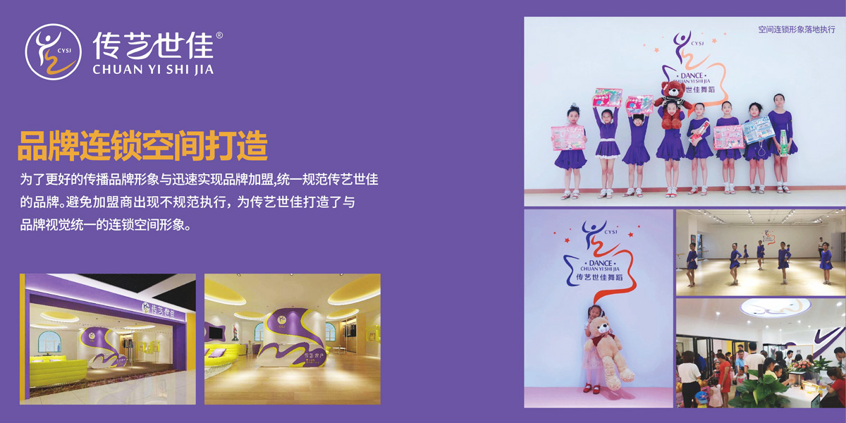 传艺世佳舞蹈教育|连锁品牌全案策划设计 传艺世佳前身(七色花舞蹈学校)发展升级,视道品牌结合品牌现有品牌优势提出传艺世佳品牌基因及指导方针:传承与艺术创新,做更专业的舞蹈教育品牌。目前全新的品牌正在导入广州及佛山各个分校。
