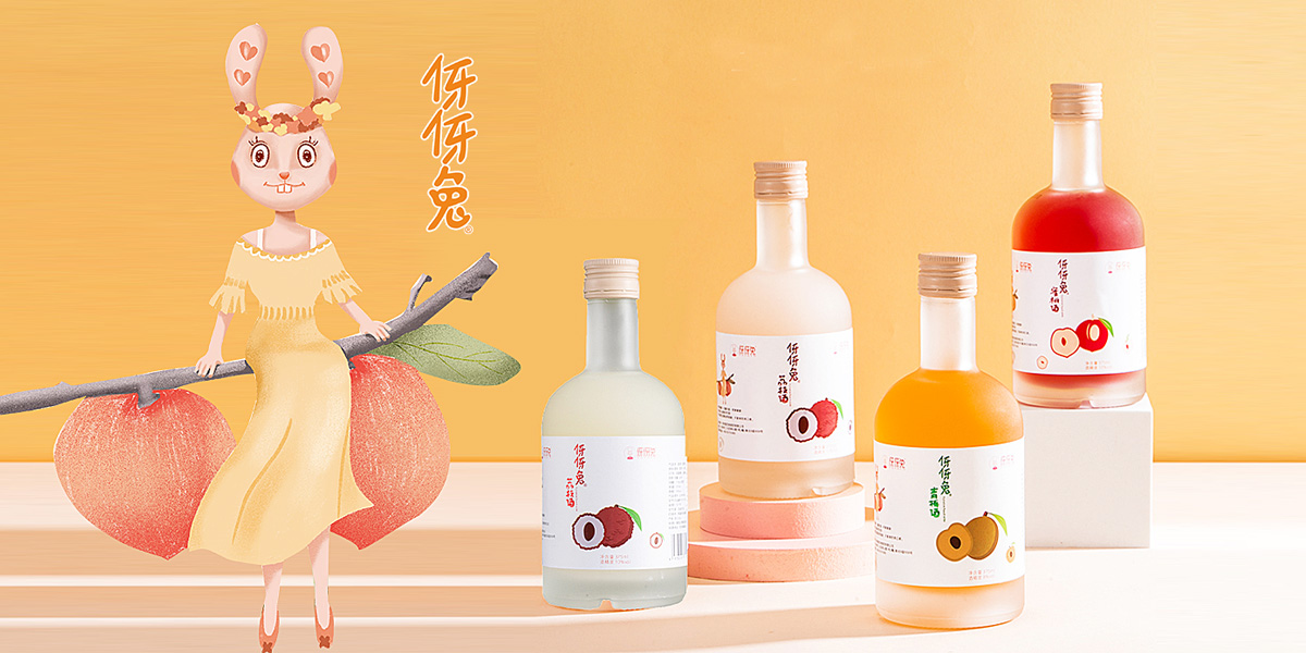 立象认为作为一个初创品牌名称非常重要,后续做的所有营销推广动作都是集中在品牌名称资产上。一个能让顾客印象深刻产生联想的名称就是好名称。今天和客人从100多个商标当中挑选了一个很合意的商标。顾客记得住、记住了就顺口说给别人听,好传播最最最重要可以省下好多广告费。产品过硬,有特点顾客记得住销量也会蹭蹭往上涨。【伢伢兔】时尚果酒将推出三种口味满足不同客户所需。立象为整个品牌提供品牌营销策略、品牌LOGO设计、产品包装设计将包装采用插画画的主题方式。除了有惬意外,也赋予了果酒一个ip的背景故事,一个属于伢伢兔的故事。后面所有延展插画的发生都是一个伢伢兔生活里的一个场景,每一款酒都是单独的一个故事场景.插画是,蜜桃成熟的香味格外诱人,伢伢兔路过桃园,忍不住坐在桃树上跟蝴蝶玩耍,这样的氛围更能传递给消费者快乐和果酒的清新甜插画吸引的同时,能发现到背后还有场景故事。